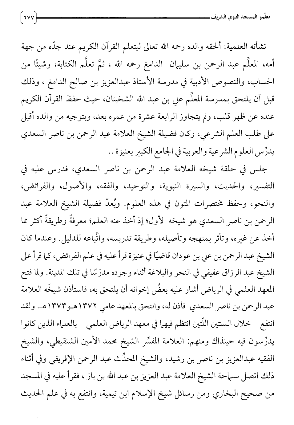 والنحو، وحفظ نحتصرات المتون في هذه العلوم. ويعد فضيلة الشيخ العلامة عبد