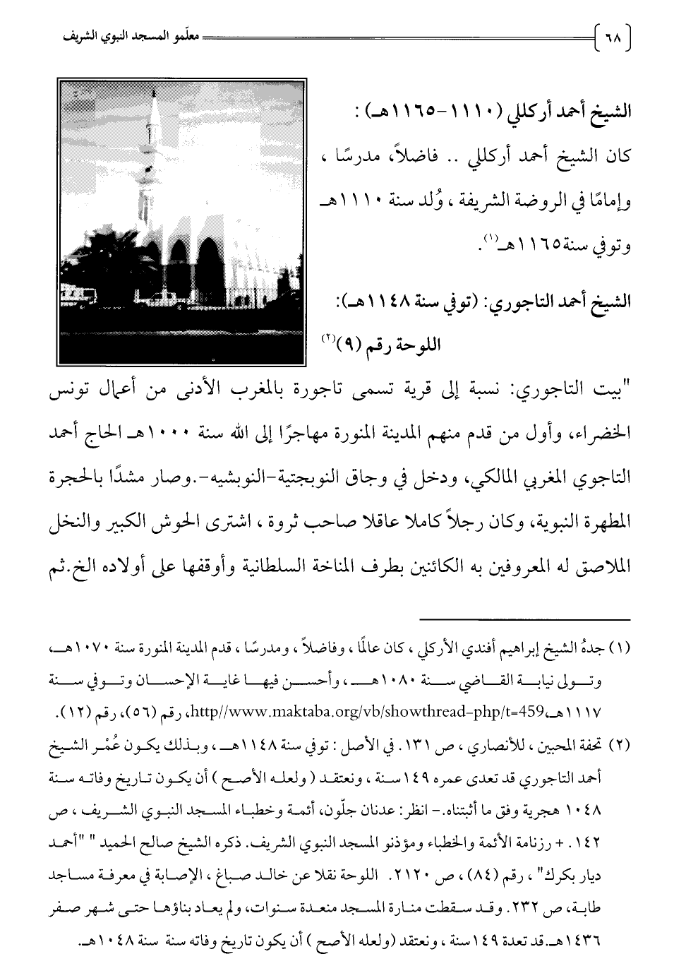 42 1. " رزنامة الأئمة والخطباء ومؤذنو المسجد النبوي الشريف. ذكره الشيخ صالح الحميد" "أحمد
