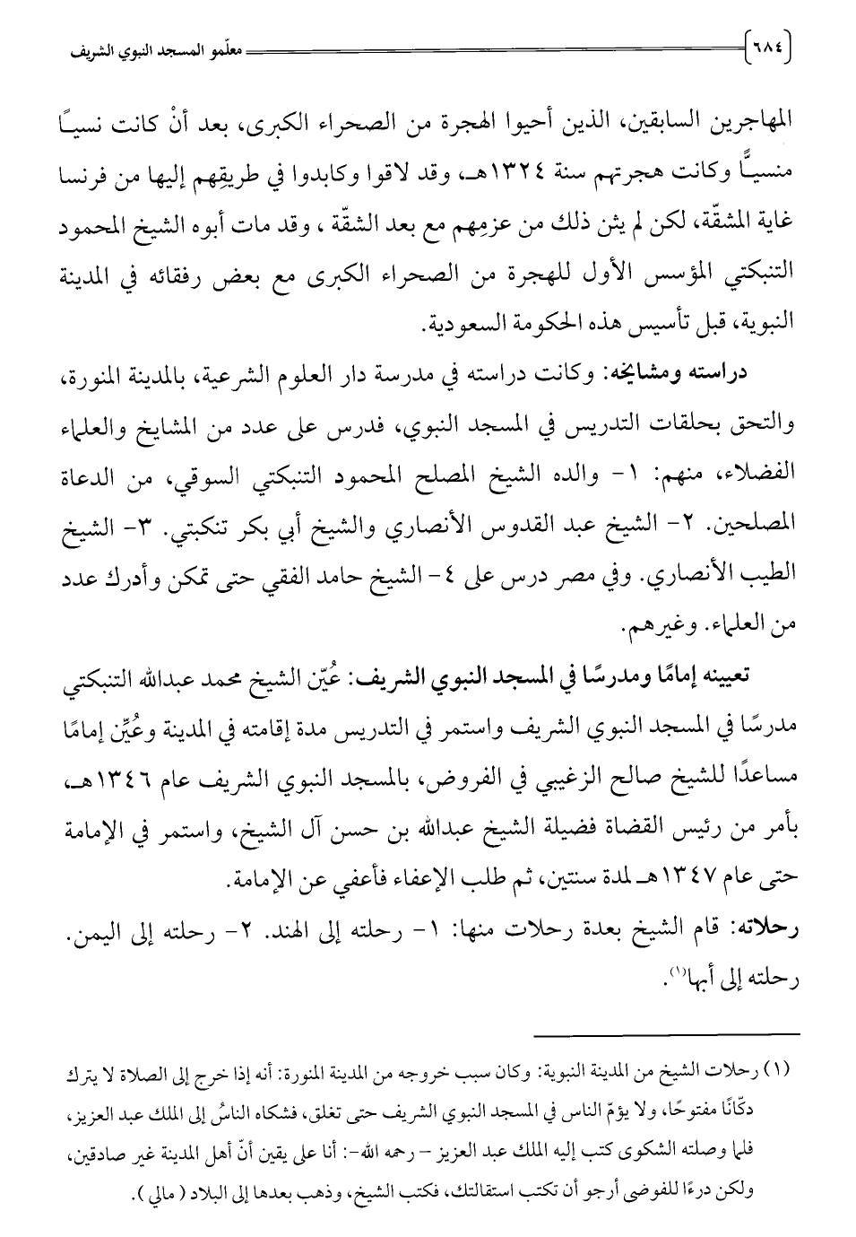 تعيينه إماما ومدرسا في المسجد النبوي الشريف: عين الشيخ محمد عبدالله التنبكتي