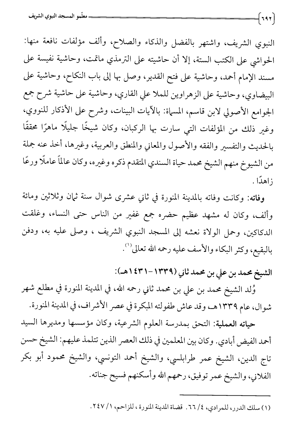 (1) سلك الدرر، للمرادي، 4/ 66. قضاة المدينة المنورة، للزاحم، 1/ 47 2.