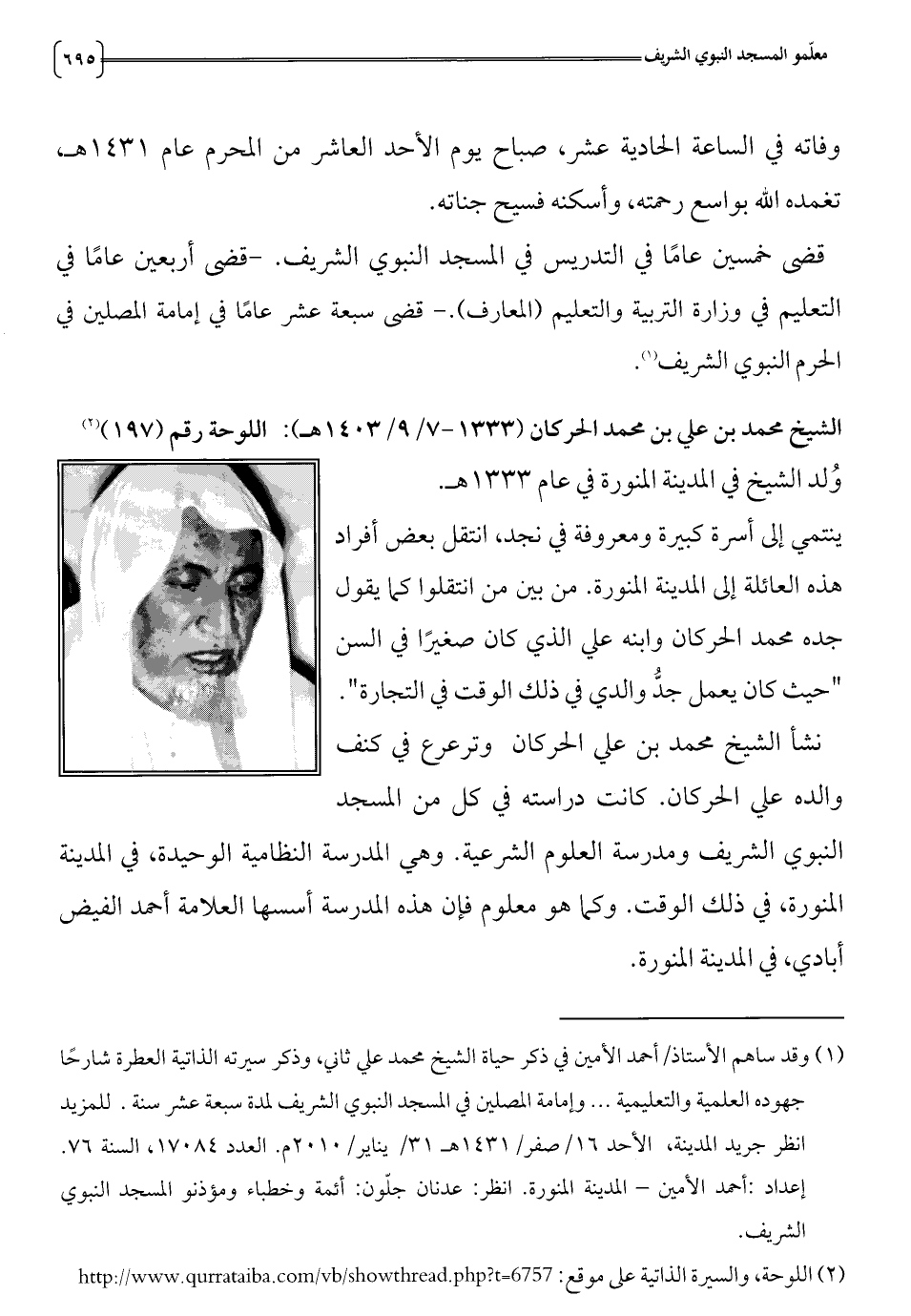 إعداد: أحمد الأمين - المدينة المنورة. انظر: عدنان جلون: أئمة وخطباء ومؤذنو المسجد النبوي