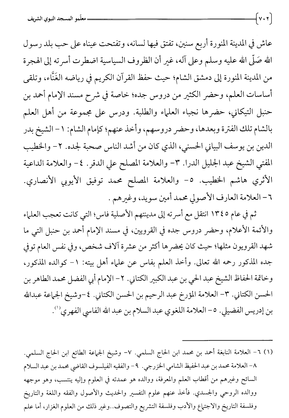 والأئمة الأعلام، وحضر دروس جده في القرويين، في مسند الإمام أحمد بن حنبل التي ما