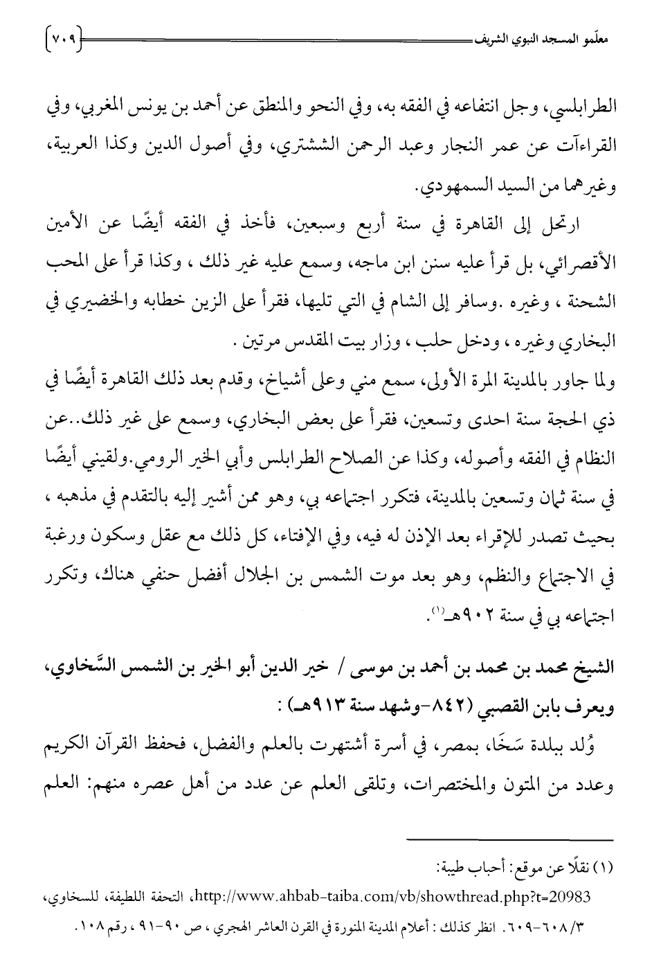 3/ 08 9 - 6 0 06 انظر كذلك: أعلام المدينة المنورة في القرن العاشر الهجري، ص 0 9 - 91، رقم 08 1.