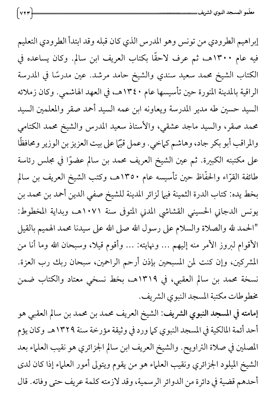 أحد أئمة المالكية في المسجد النبوي كما ورد في وثيقة مؤرخة سنة 329 1 هـ وكان يؤم