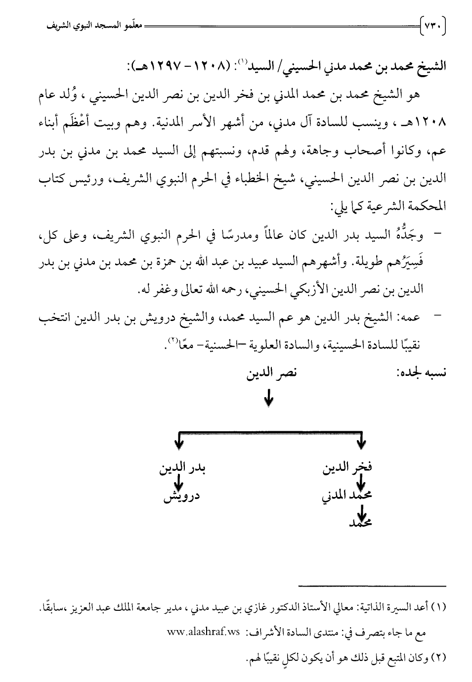 الدين بن نصر الدين الحسيني، شيخ الخطباء في الحرم النبوي الشريف، ورئيس كتاب