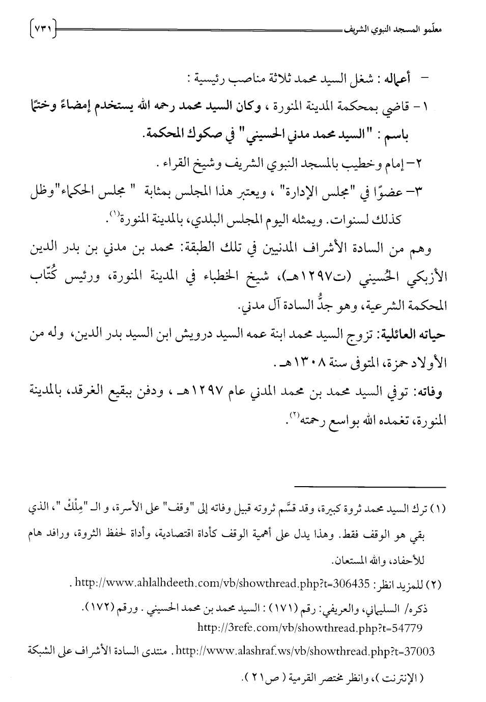 1 - قاضي بمحكمة المدينه المنورة، وكان السيد محمد رحمه الله يستخدم إمضاء وختما