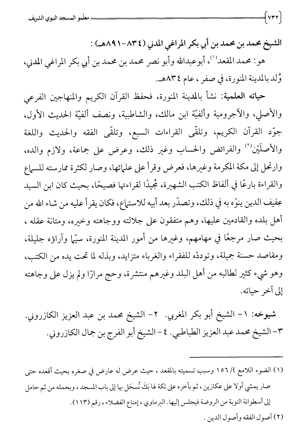 الشيخ محمد بن محمد بن أبي بكر المراغي المدني (834 - 891 هـ):