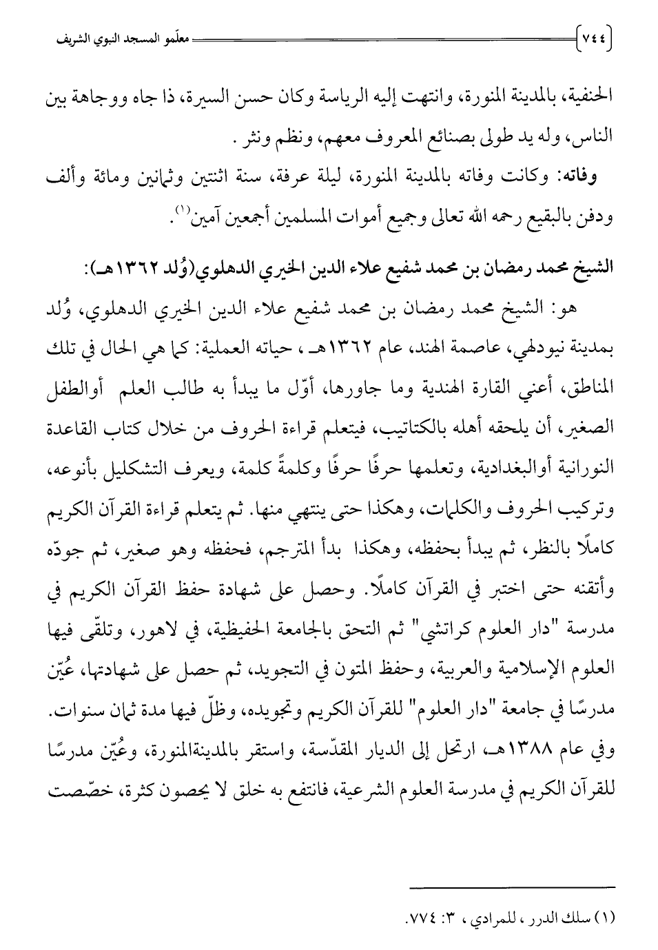 الشيخ محمد رمضان بن محمد شفيع علاء الدين الخيري الدهلوي (ولد 1362 هـ):