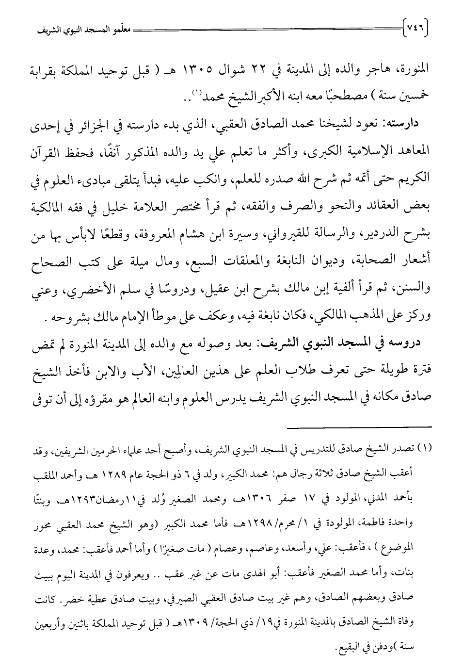 (1) تصدر الشيخ صادق للتدريس في المسجد النبوي الشريف، وأصبح أحد علماء الحرمين الشريفين، وقد