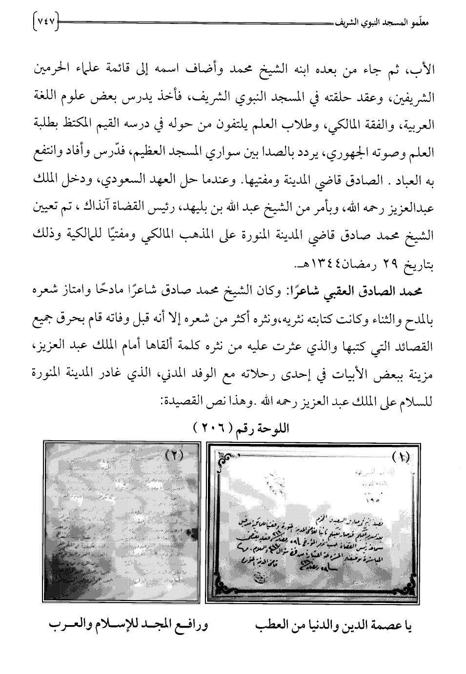 به العباد. الصادق قاضي المدينة ومفتيها. وعندما حل العهد السعودي، ودخل الملك