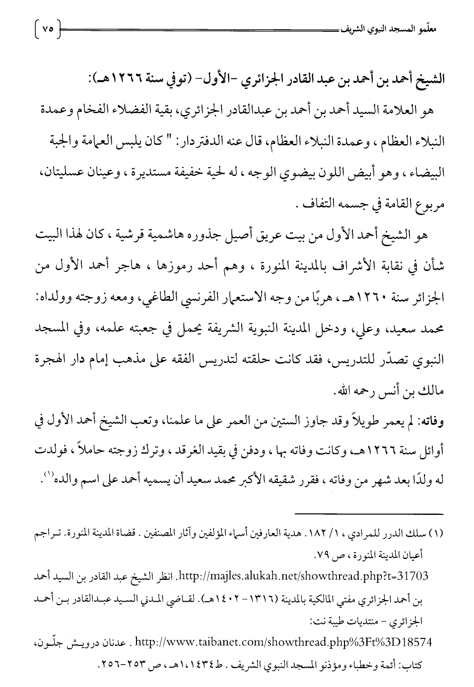 http://majles.alukah.net/t31703/، ط. انظر الشيخ عبد القادر بن السيد أحمد