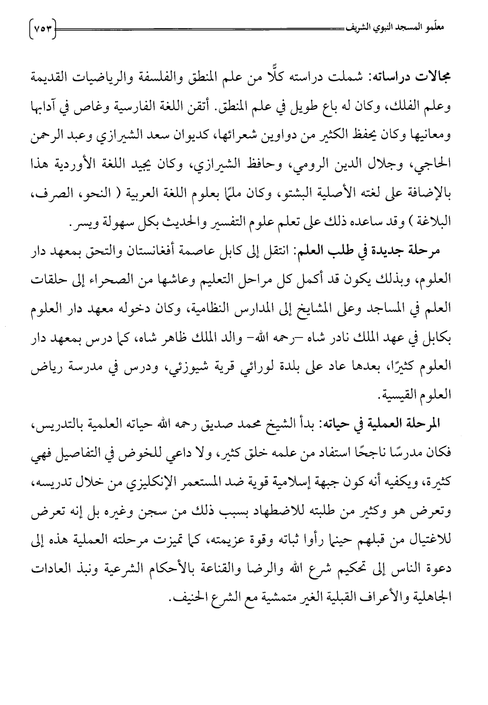 كثيرة، ويكفيه أنه كون جبهة إسلامية قوية ضد المستعمر الإنكليزي من خلال تدريسه،
