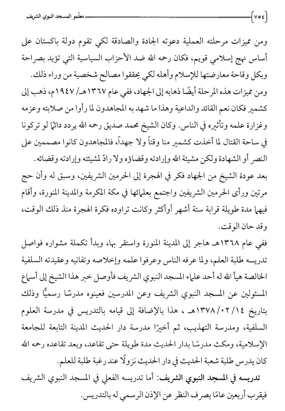 المسئولين عن المسجد النبوي الشريف وعن المدرسين فعينوه مدرسا رسميا وذلك