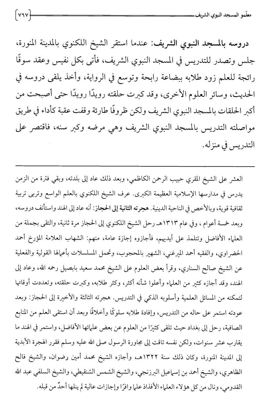 دروسه بالمسجد النبوي الشريف: عندما استقر الشيخ اللكنوي بالمدينة المنورة،