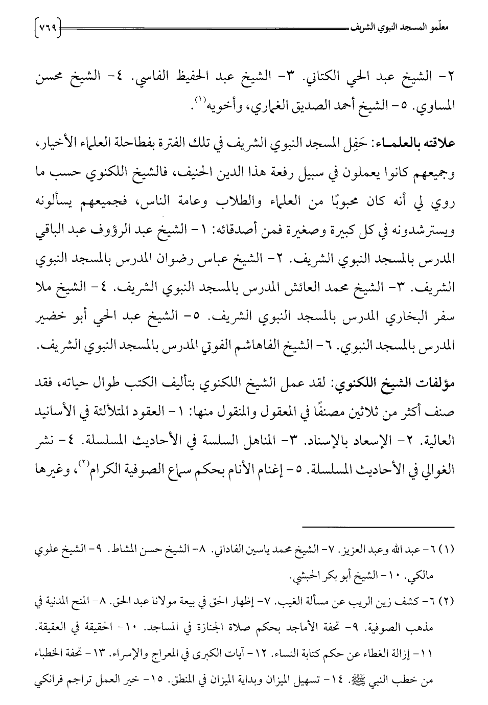 الشريف. 3 - الشيخ محمد العائش المدرس بالمسجد النبوي الشريف. 4 - الشيخ ملا