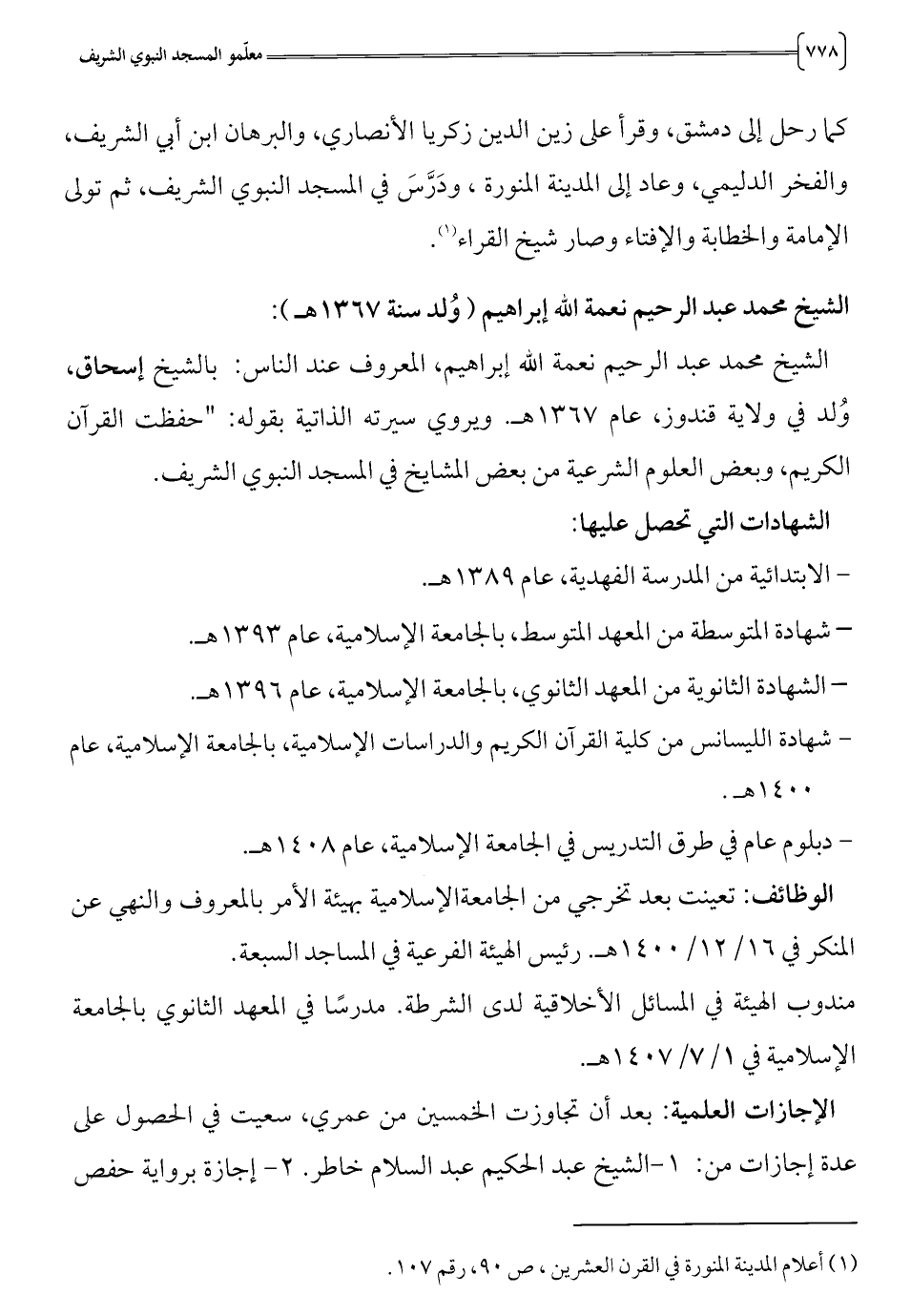 (1) أعلام المدينة المنورة في القرن العشرين، ص 0 9، رقم 7 0 1.