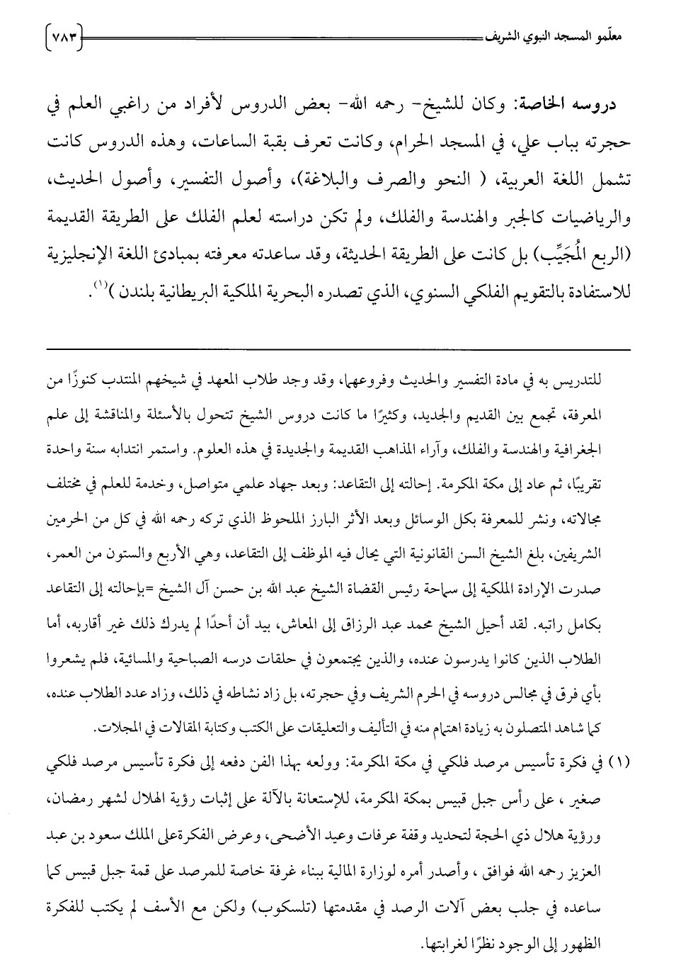 (1) في فكرة تأسيس مرصد فلكي في مكة المكرمة: وولعه بهذا الفن دفعه إلى فكرة تأسيس مرصد فلكي