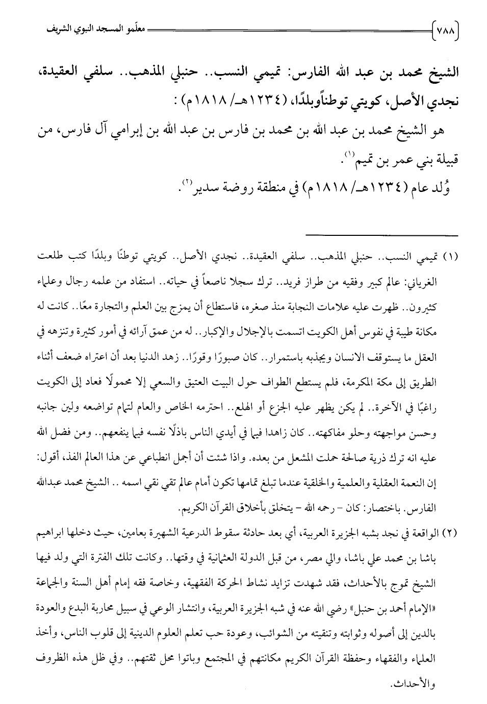 الشيخ محمد بن عبد الله الفارس: تميمي النسب .. حنبلي المذهب .. سلفي العقيدة،