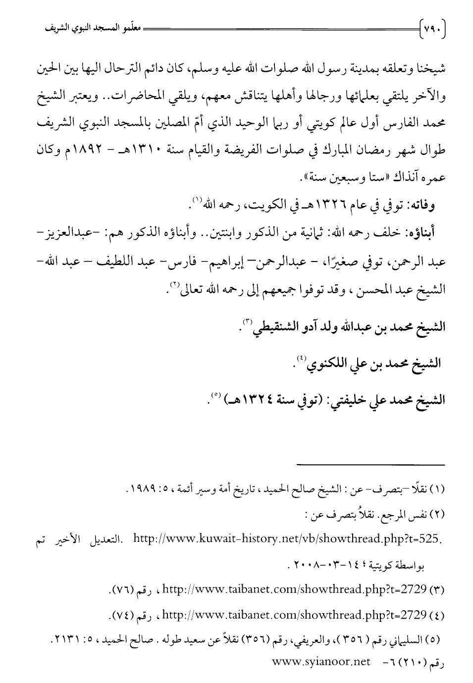(1) نقلا -بتصرف - عن: الشيخ صالح الحميد، تاريخ أمة وسير أئمة، 5: 989 1.