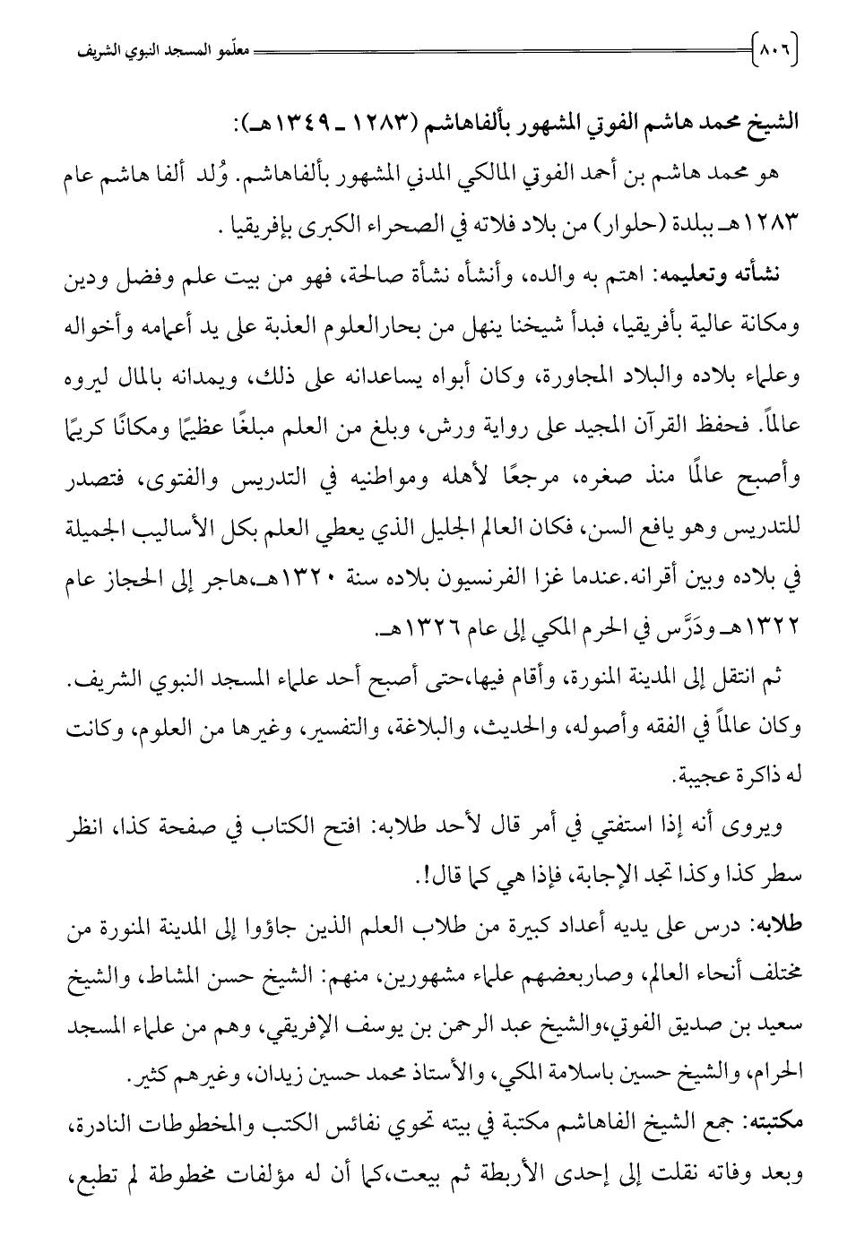 الشيخ محمد هاشم الفوتي المشهور بالفاهاشم (283 1 - 1349 هـ):