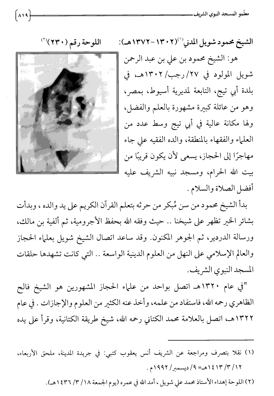 الشيخ محمود شويل المدني (1) (2 0 13 - 1372 هـ):