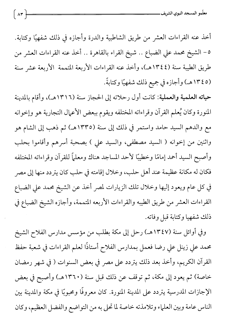 المنورة وكان يعلم القرآن وقراءاته المختلفه ويقوم ببعض الأعمال التجارية هو وإخوانه