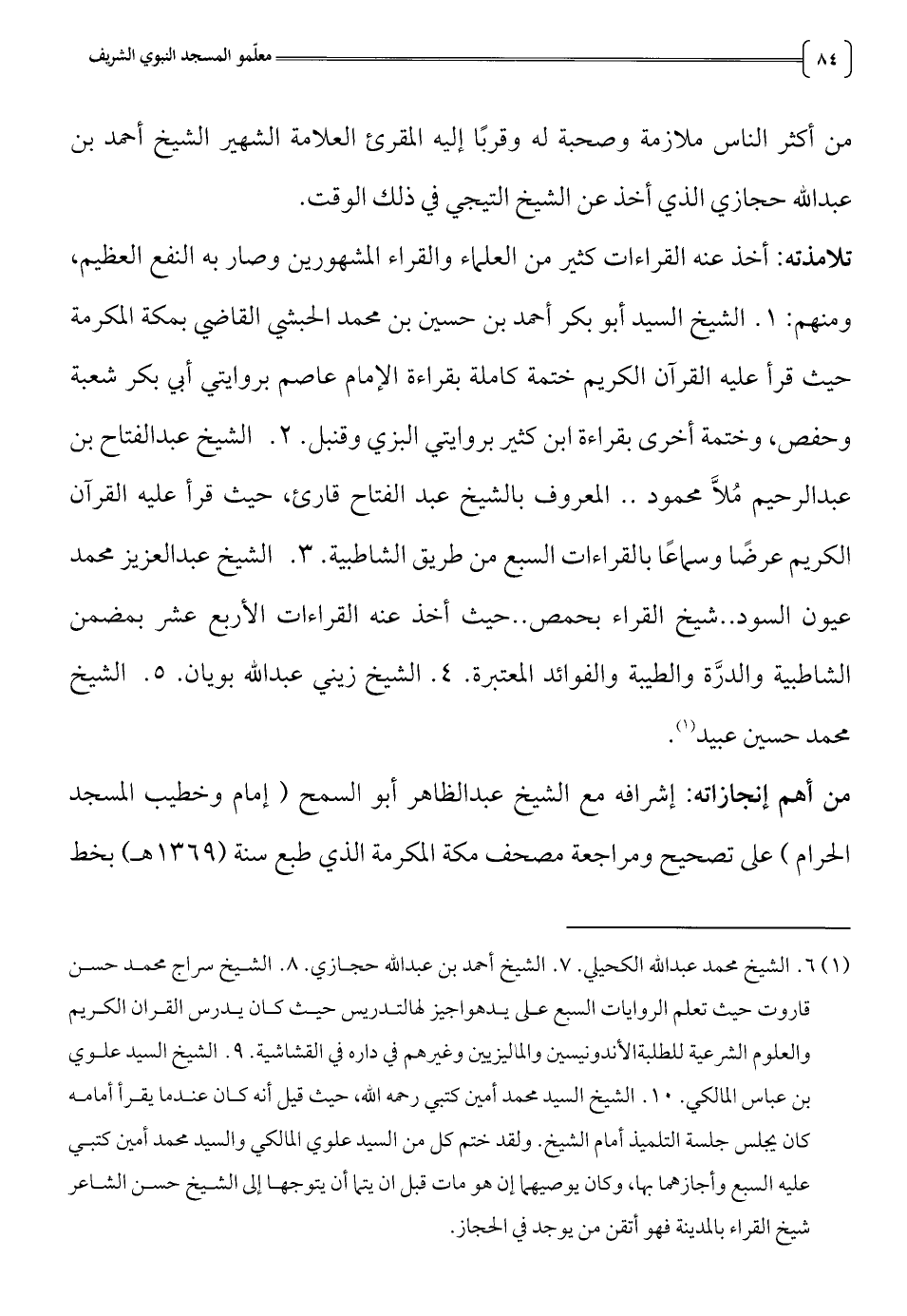 (1) 6. الشيخ محمد عبدالله الكحيلي. 7. الشيخ أحمد بن عبدالله حجازي. 8. الشيخ سراج محمد حسن