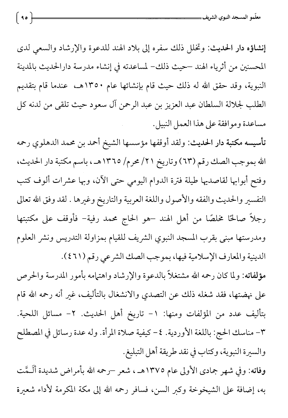 المحسنين من أثرياء الهند -حيث ذلك- لمساعدته في إنشاء مدرسة دار الحديث بالمدينة