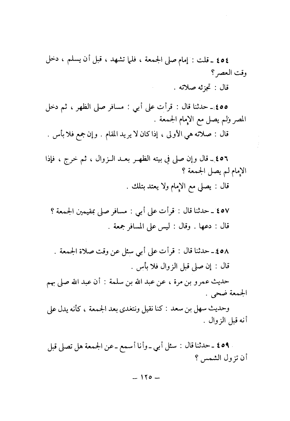 455 - حَدثنَا قَالَ قَرَأت على أبي مُسَافر صلى الظّهْر ثمَّ دخل الْمصر وَلم يصل مَعَ الامام الْجُمُعَة
