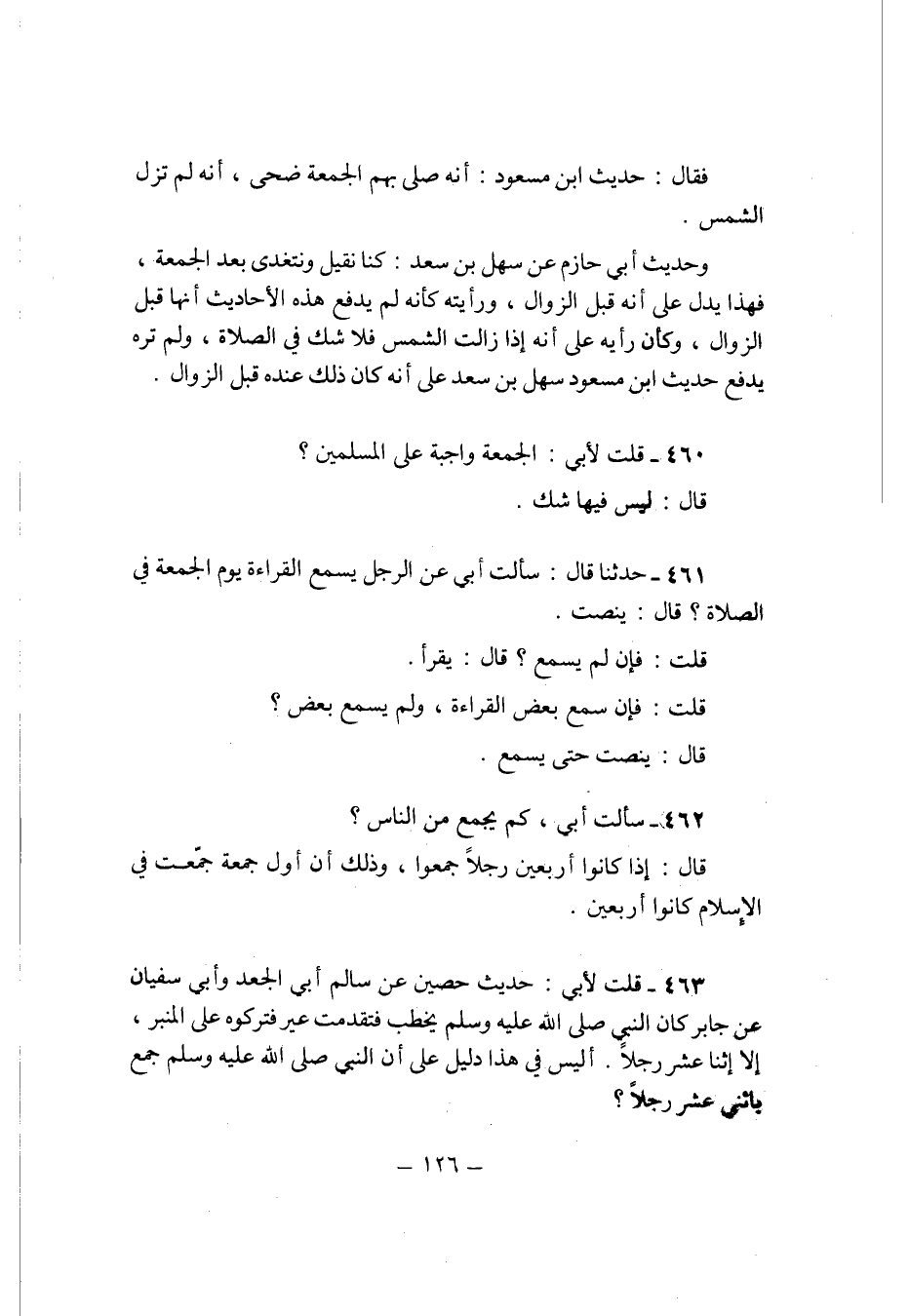 460 - قلت لأبي الْجُمُعَة وَاجِبَة على الْمُسلمين