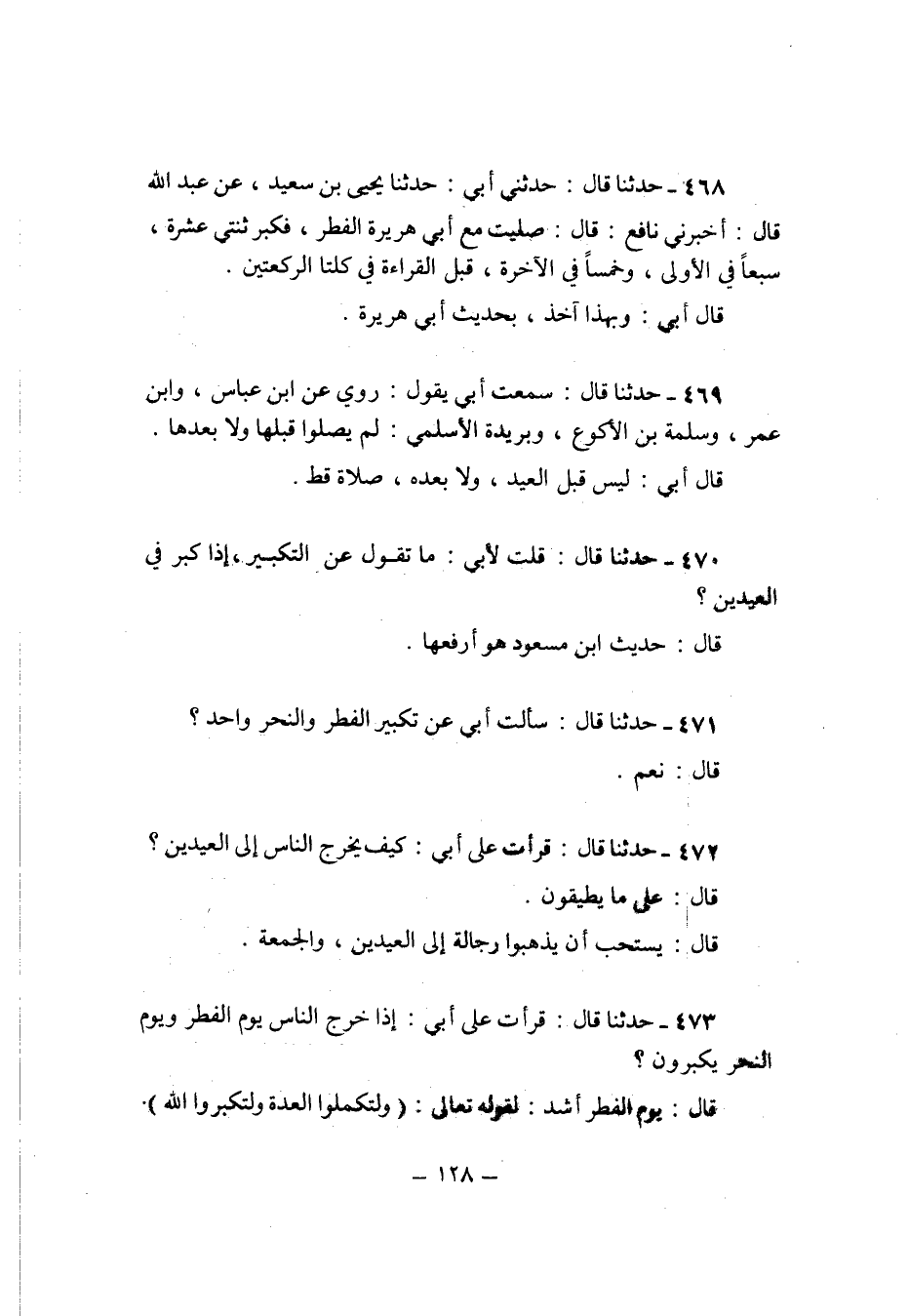 470 - حَدثنَا قَالَ قلت لابي مَا تَقول عَن التَّكْبِير اذا كبر فِي الْعِيدَيْنِ