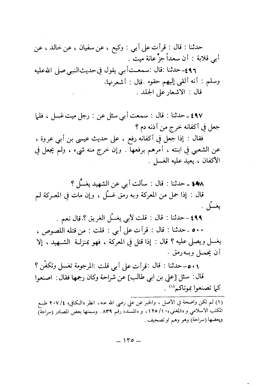 501 - حَدثنَا قَالَ قَرَأت على ابي قلت المرجومة تغسل وتكفن