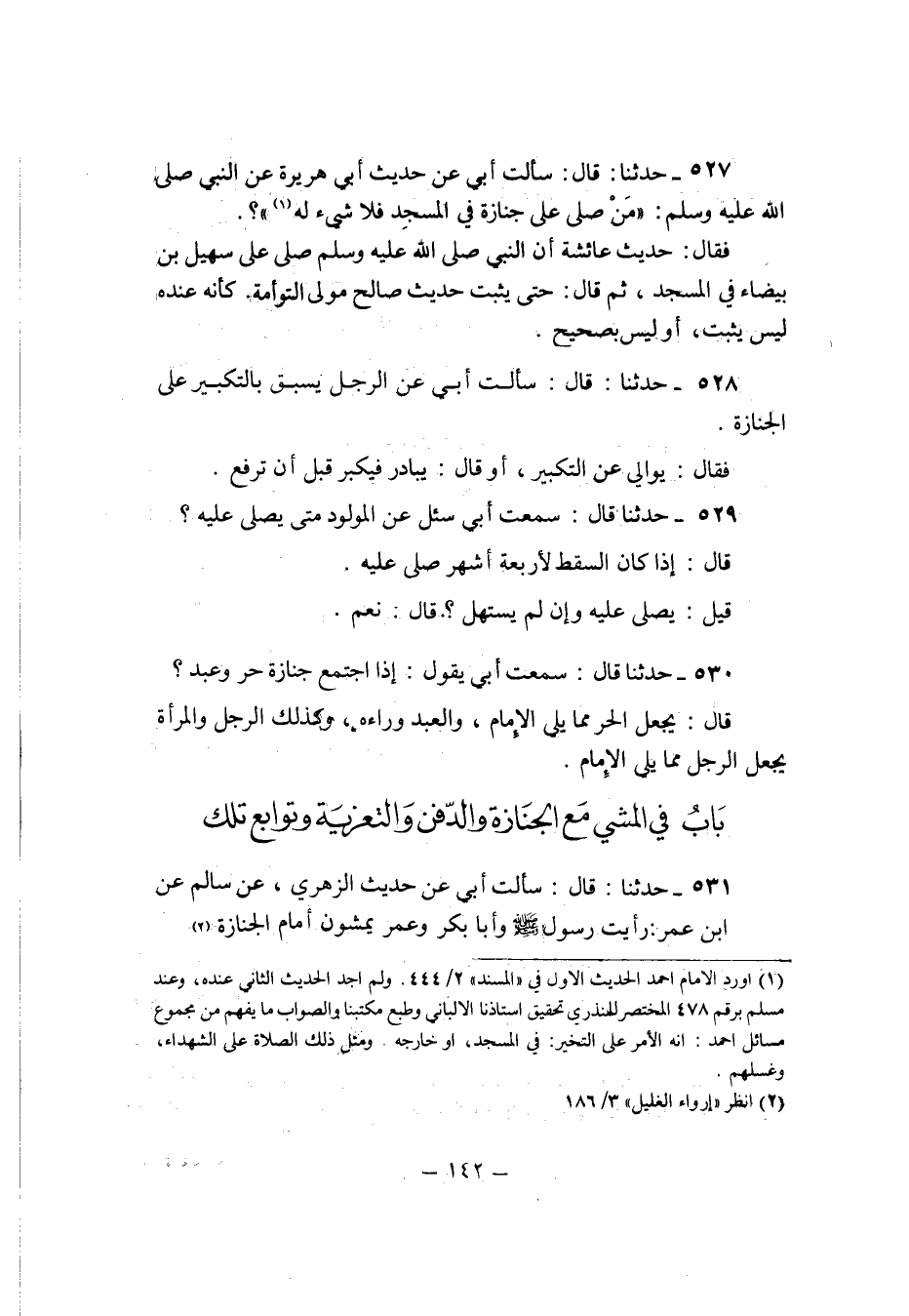 530 - حَدثنَا قَالَ سَمِعت ابي يَقُول اذا اجْتمع جَنَازَة حر وَعبد