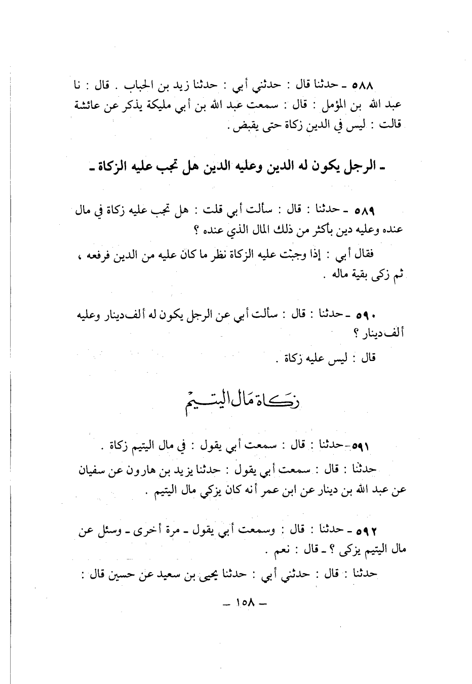 592 - حَدثنَا قَالَ وَسمعت ابي يَقُول مرّة اخرى وَسُئِلَ عَن مَال الْيَتِيم يزكّى قَالَ نعم