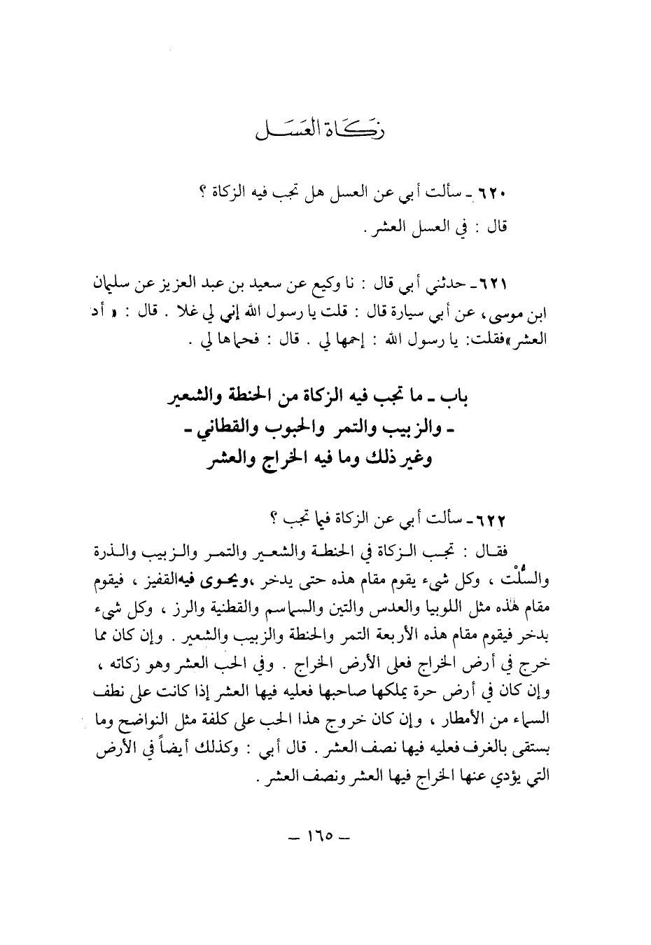 620 - سَأَلت ابي عَن الْعَسَل هَل تجب فِيهِ الزَّكَاة