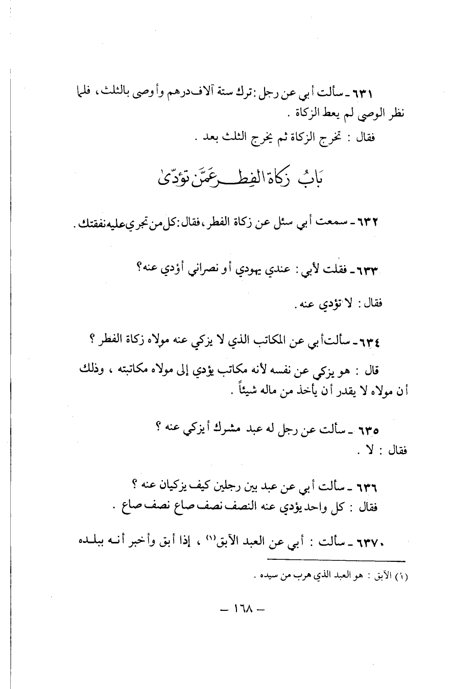 634 - سَأَلت ابي عَن الْمكَاتب الَّذِي لَا يزكّى عَنهُ مَوْلَاهُ زَكَاة الْفطر