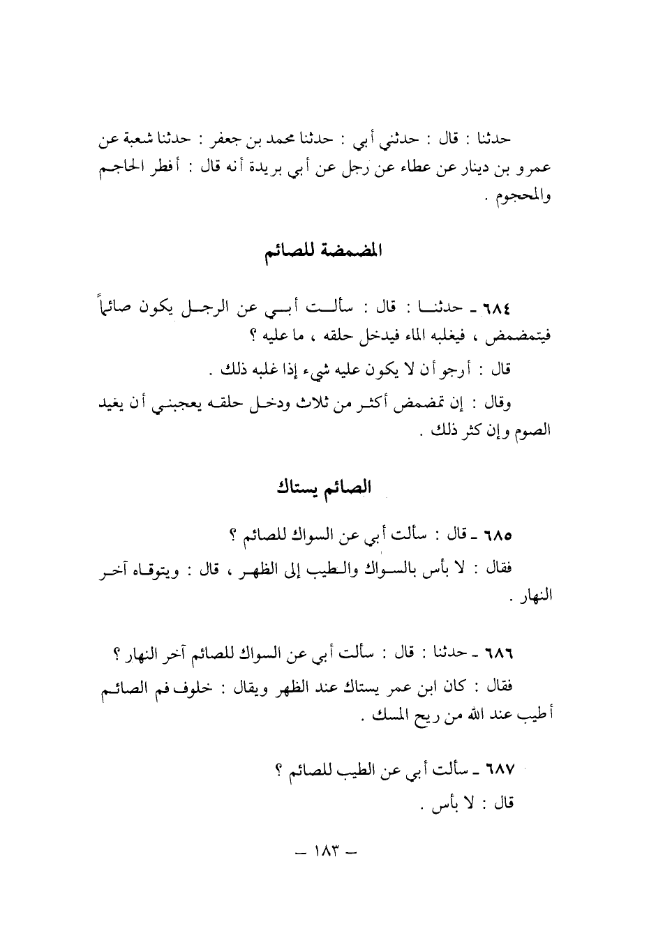 687 - سَأَلت ابي عَن الطّيب للصَّائِم