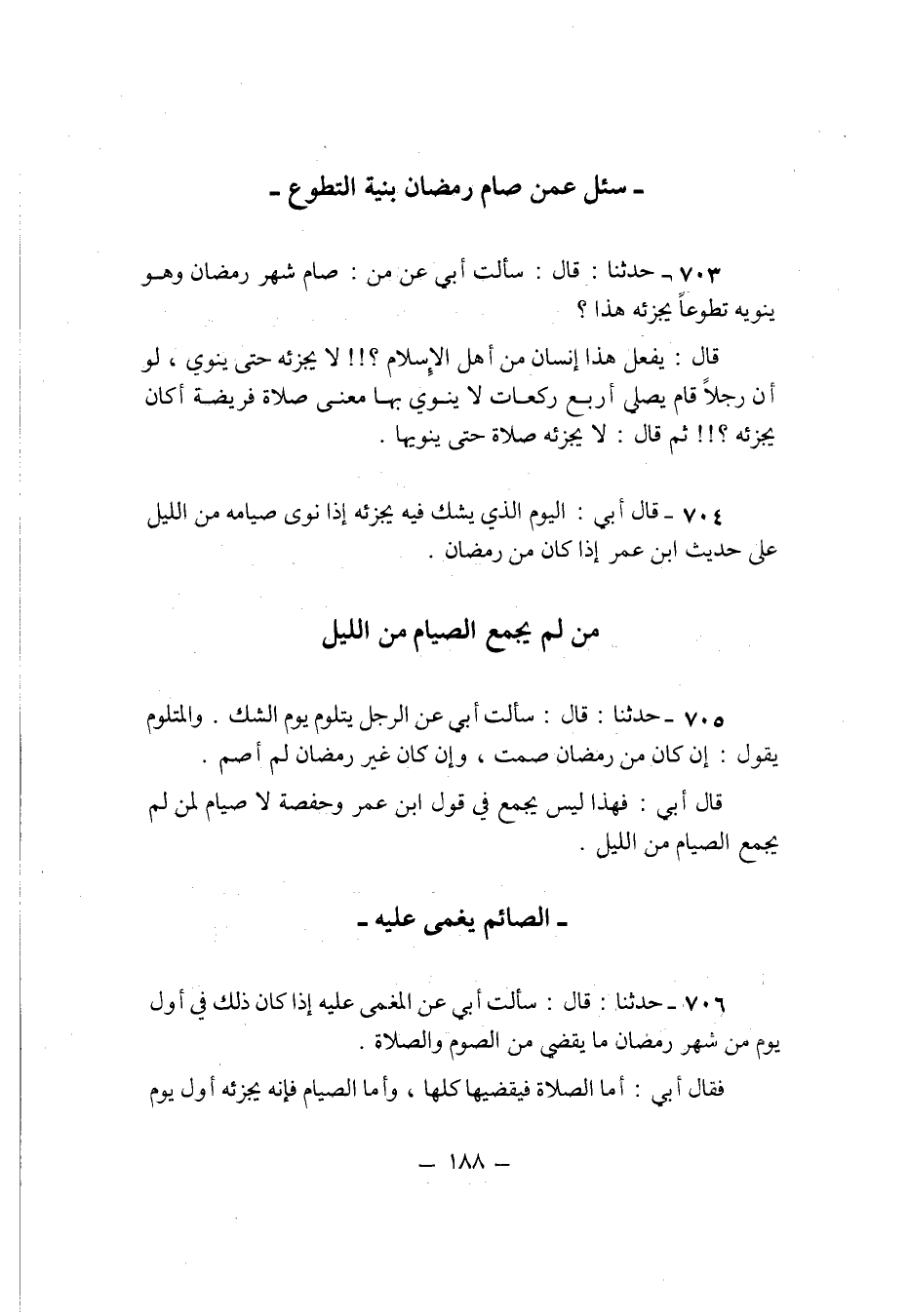 704 - قَالَ ابي الْيَوْم الَّذِي يشك فِيهِ يُجزئهُ اذا نوى صِيَامه من اللَّيْل على حَدِيث ابْن عمر اذا كَانَ من رَمَضَان