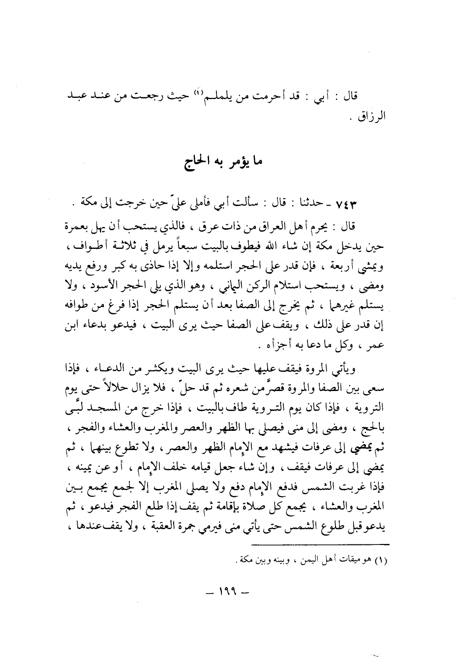 743 - حَدثنَا قَالَ سَأَلت ابي فأملى عَليّ حِين خرجت الى مَكَّة