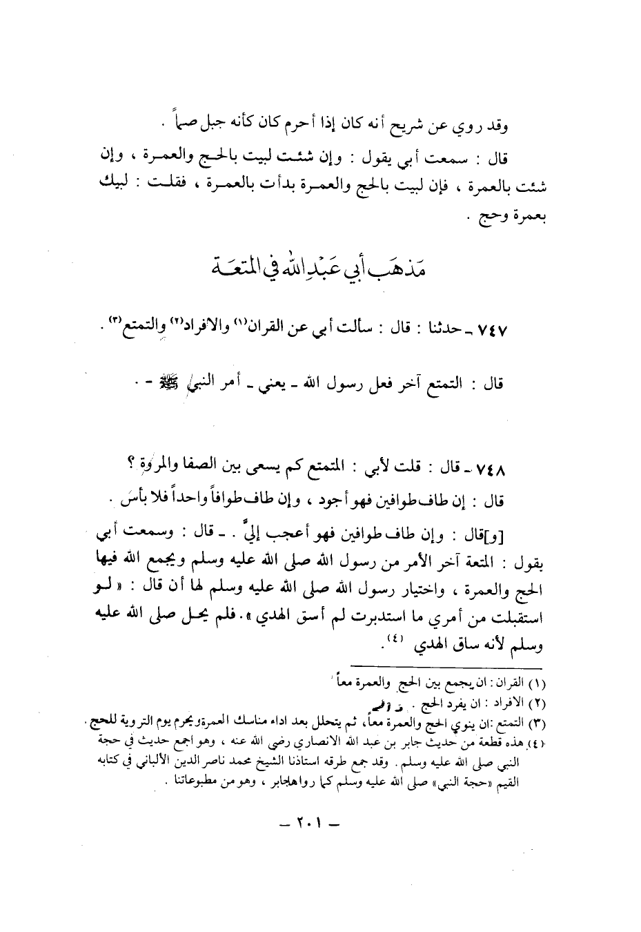 747 - حَدثنَا قَالَ سَأَلت ابي عَن الْقُرْآن والافراد والتمتع