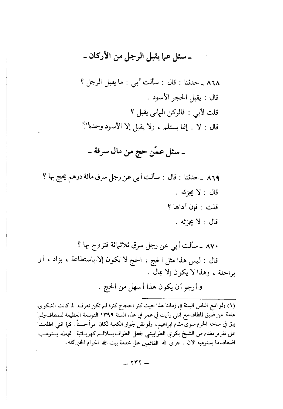 سُئِلَ عَمَّا يقبل الرجل من الاركان