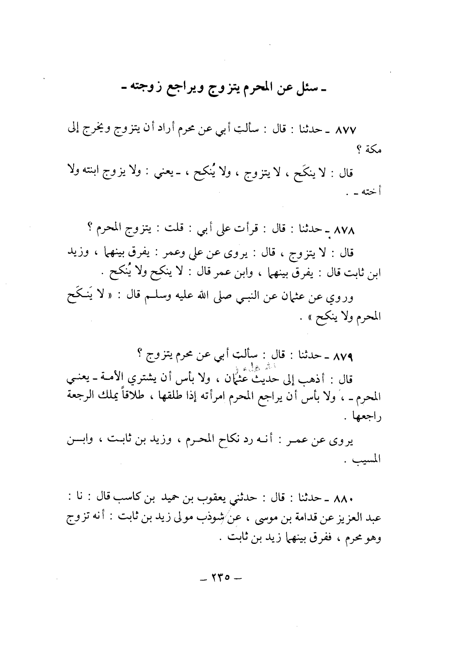 879 - حَدثنَا قَالَ سَالَتْ ابي عَن محرم يتَزَوَّج