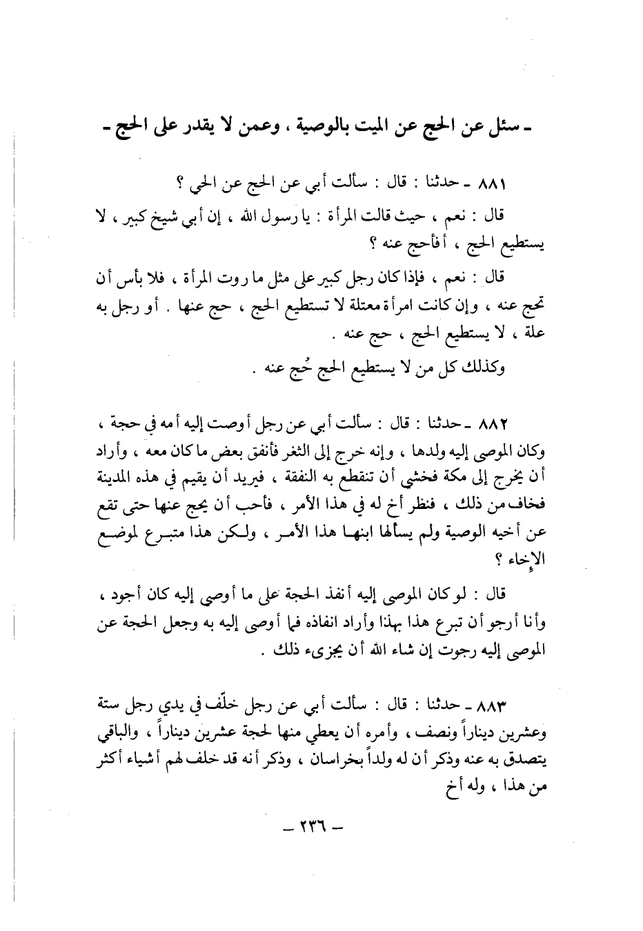 881 - حَدثنَا قَالَ سَأَلت ابي عَن الْحَج عَن الْحَيّ