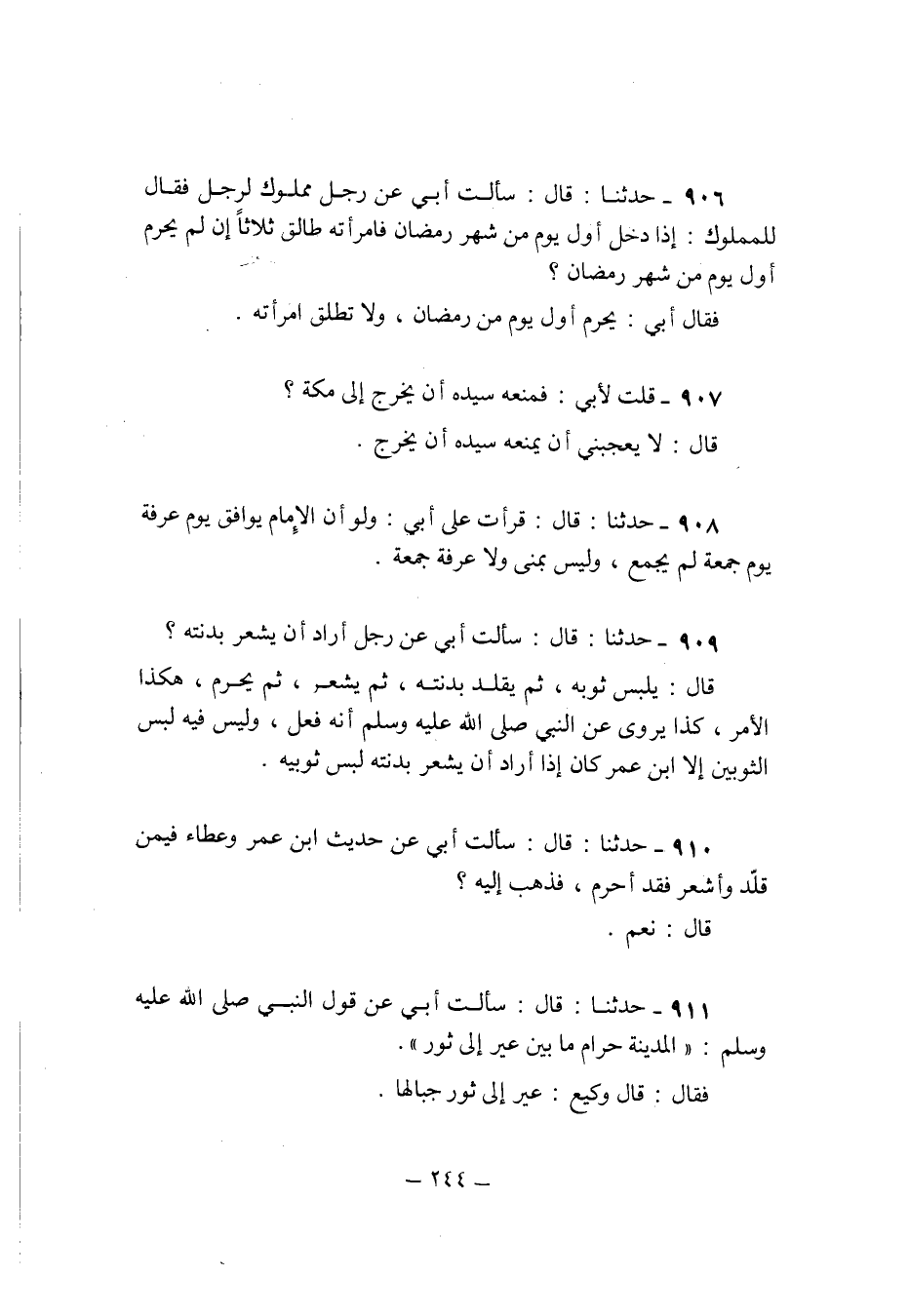 907 - قلت لابي فَمَنعه سَيّده ان يخرج إِلَى مَكَّة