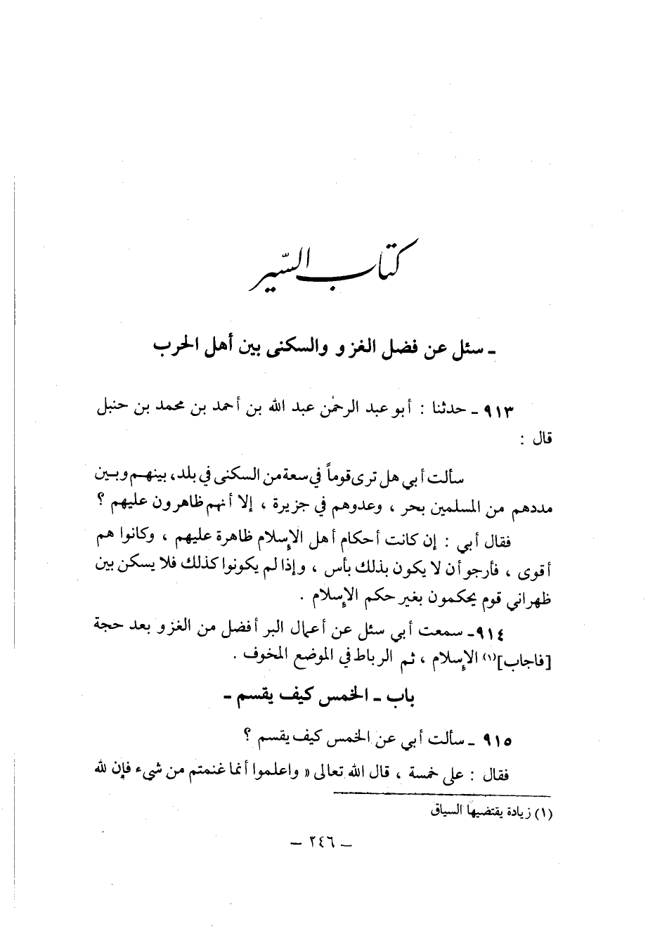 913 - حَدثنَا ابو عبد الرَّحْمَن عبد الله بن احْمَد بن مُحَمَّد بن حَنْبَل قَالَ