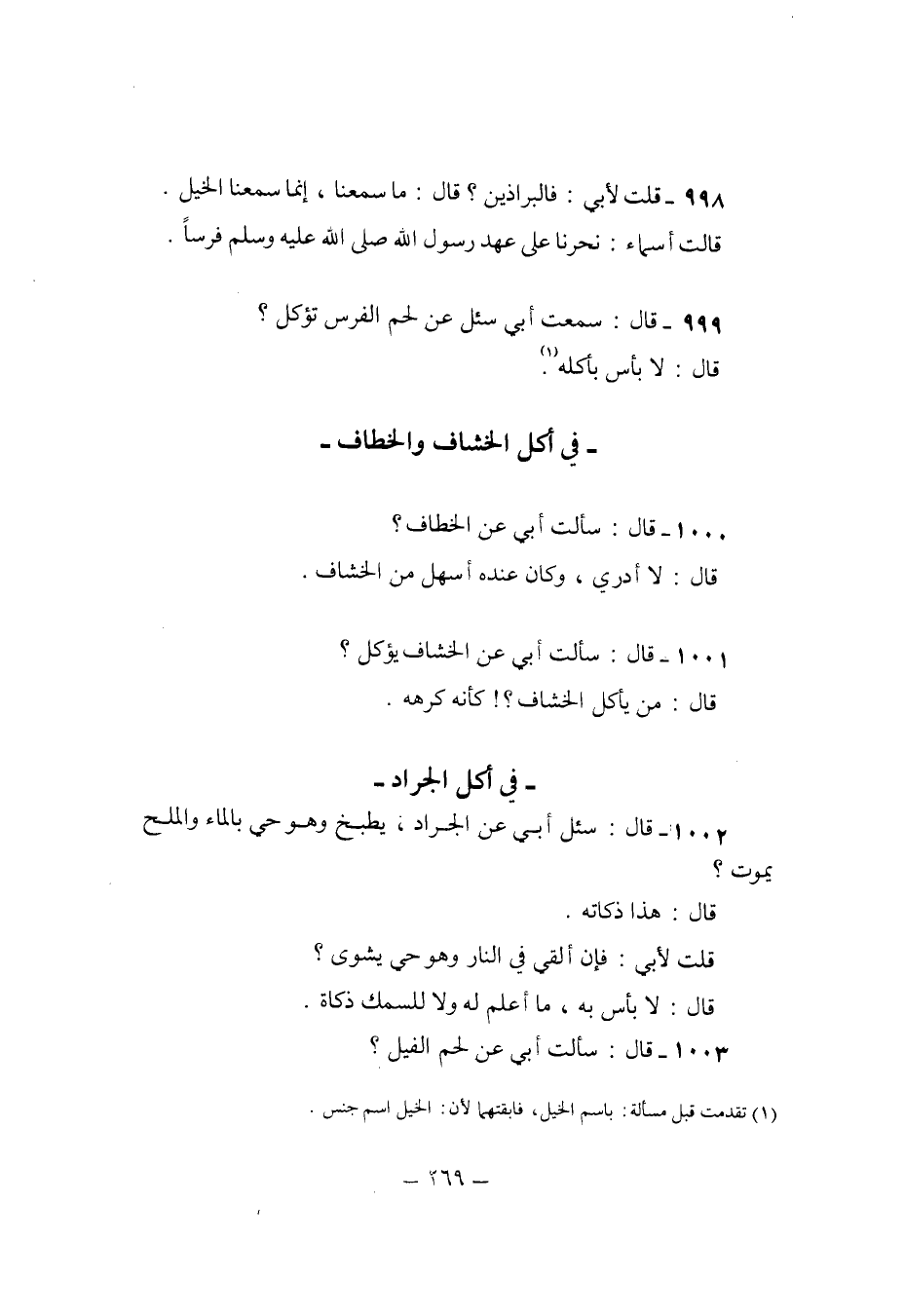 998 - قلت لابي فالبراذين قَالَ مَا سمعنَا إِنَّمَا سمعنَا الْخَيل
