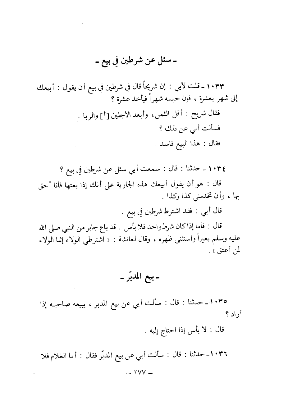 1035 - حَدثنَا قَالَ سَأَلت ابي عَن بيع الْمُدبر يَبِيعهُ صَاحبه اذا أَرَادَ