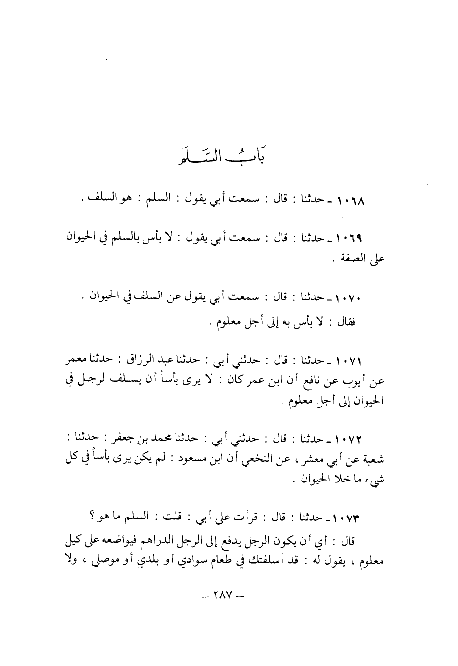 1070 - حَدثنَا قَالَ سَمِعت ابي يَقُول عَن السّلف فِي الْحَيَوَان