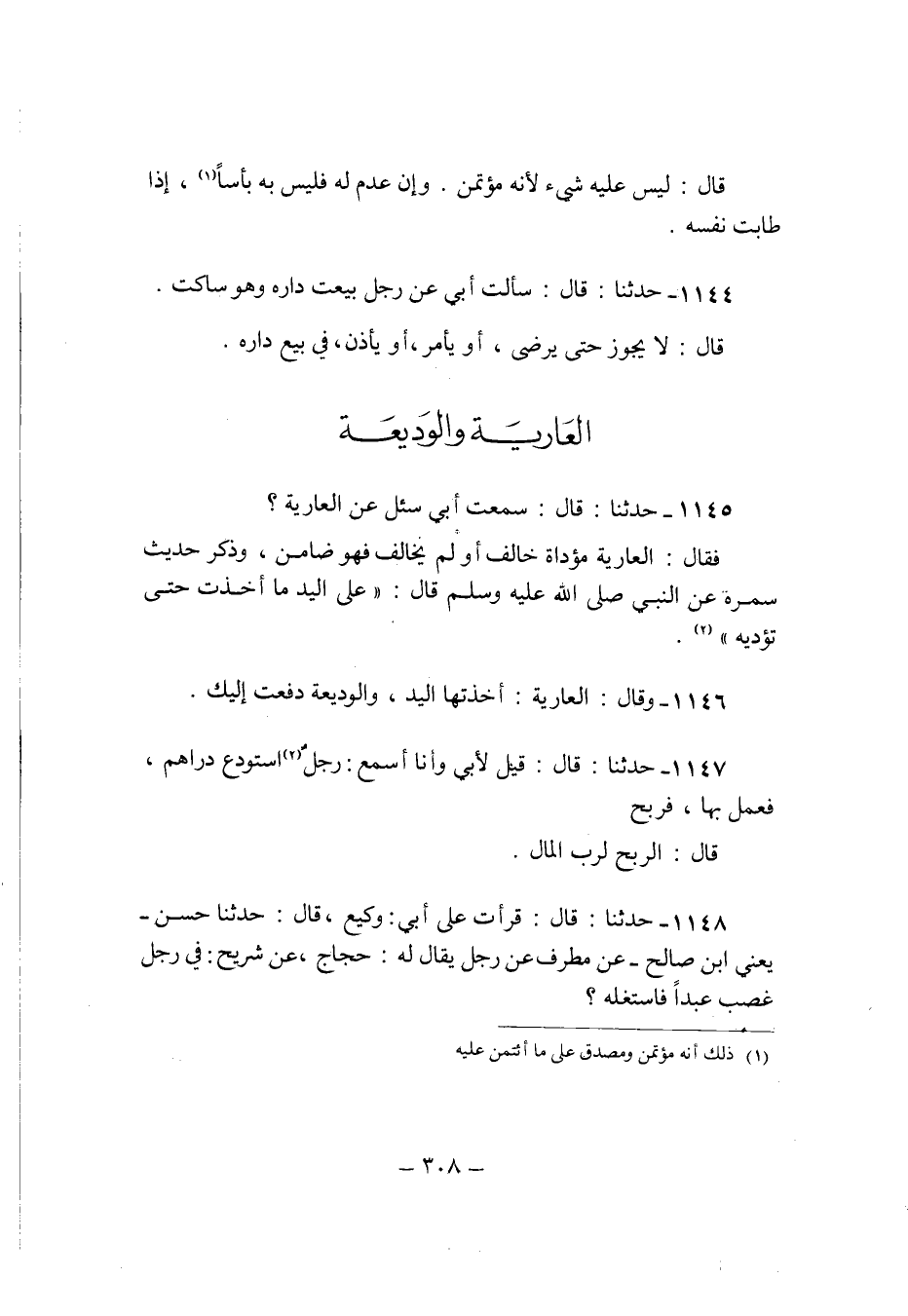 1145 - حَدثنَا قَالَ سَمِعت ابي سُئِلَ عَن الْعَارِية