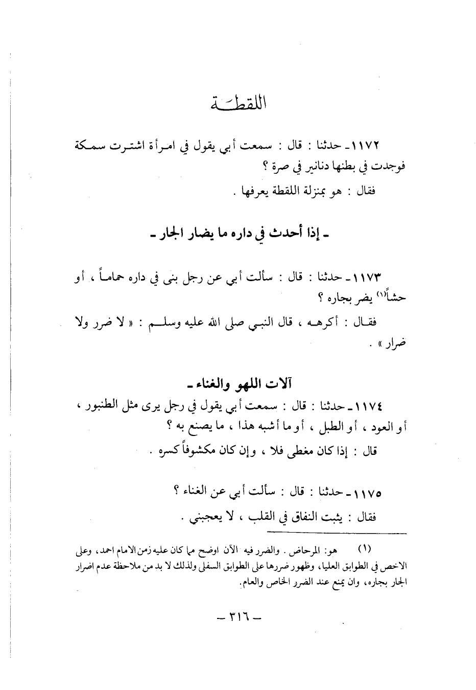 1173 - حَدثنَا قَالَ سَأَلت ابي عَن رجل بنى فِي دَاره حَماما اَوْ حَشا يضر بجاره